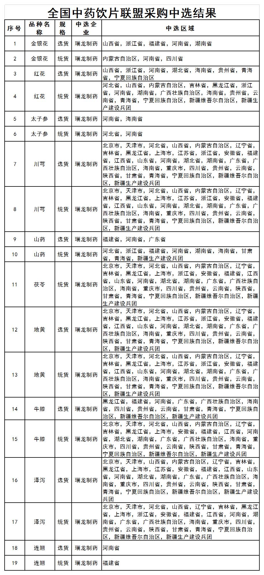 喜報(bào)!瑞龍制藥中藥飲片19個(gè)品規(guī)成功中選2025年全國中藥飲片聯(lián)盟采購